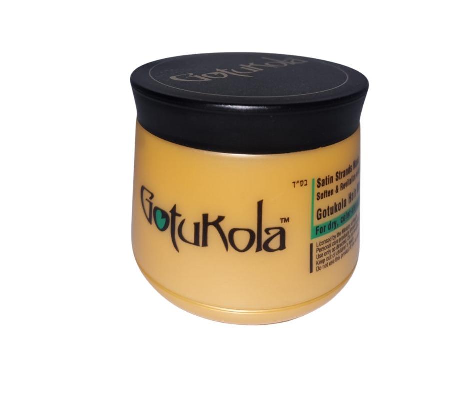 מסכת הזנה לכל סוגי השיער גוטוקולה,מכילה חלבון קרטין וצמח גוטוקולה שהוא מקור טבעי לויטמין b ו k. ללא מלחים. מתאימה לשיער יבש,עבה וגם לשיער שעבר החלקות וטיפולי כימיים.